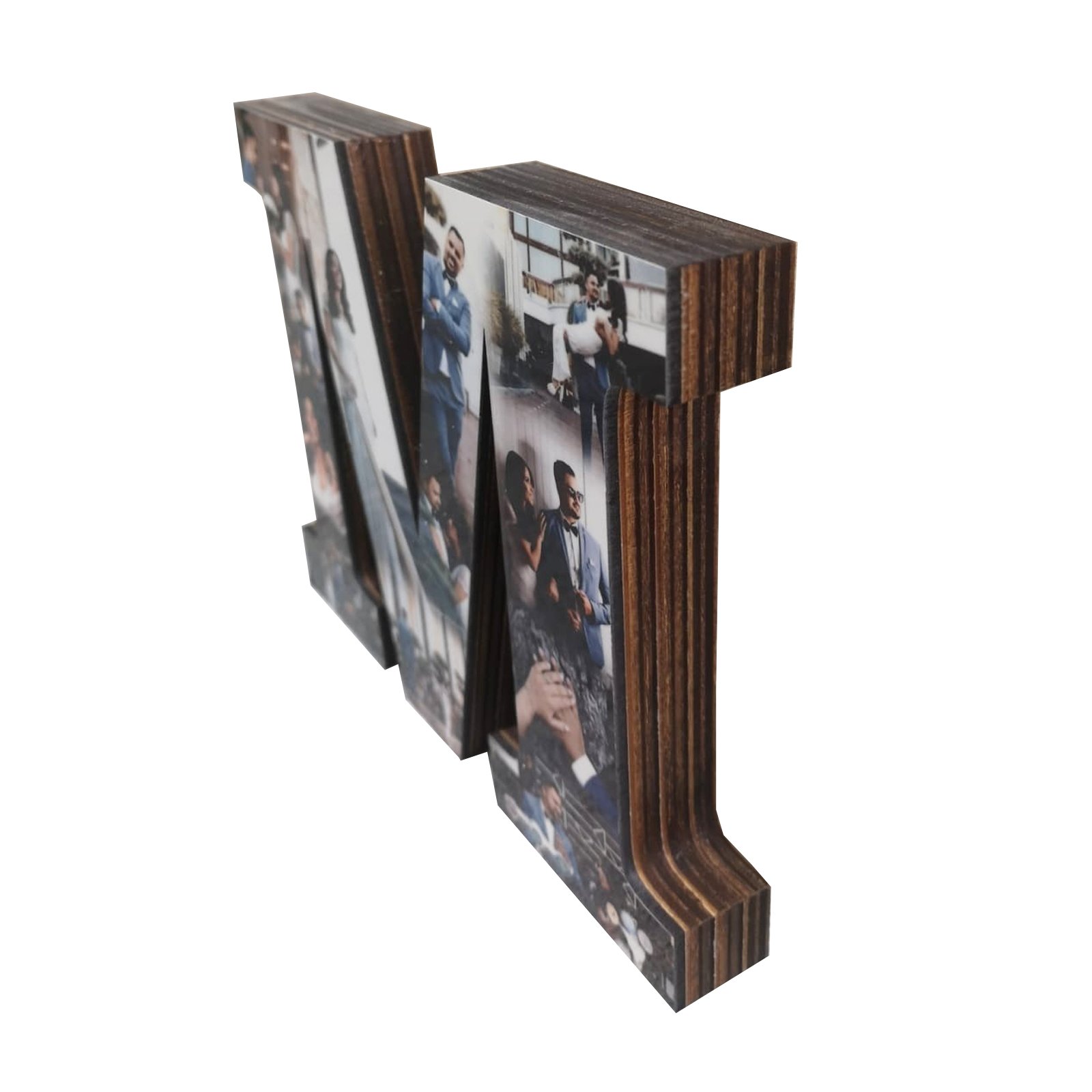 - בלוק אות צורנית לבחירה עם תמונות אישיות מודפסות ישירות על העץ.