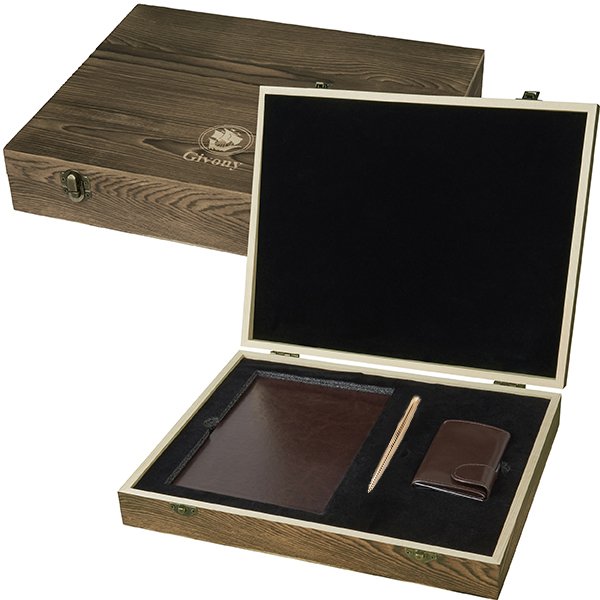 מארז עץ מחברת עט וארנק 'G-MAN'