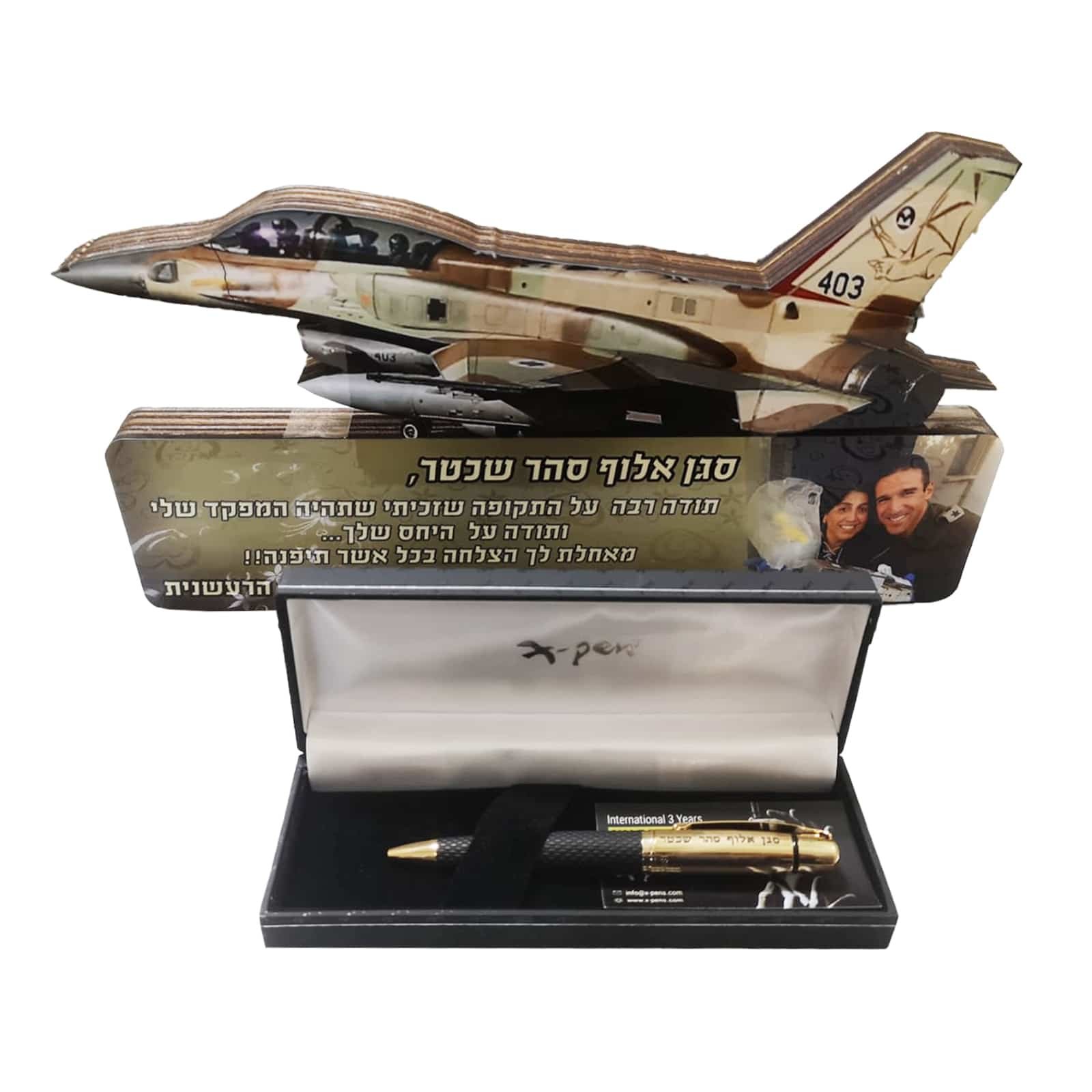 מטוס בחיתוך צורני והדפס שולחני עם שילוב הקדשה אישית ותמונה