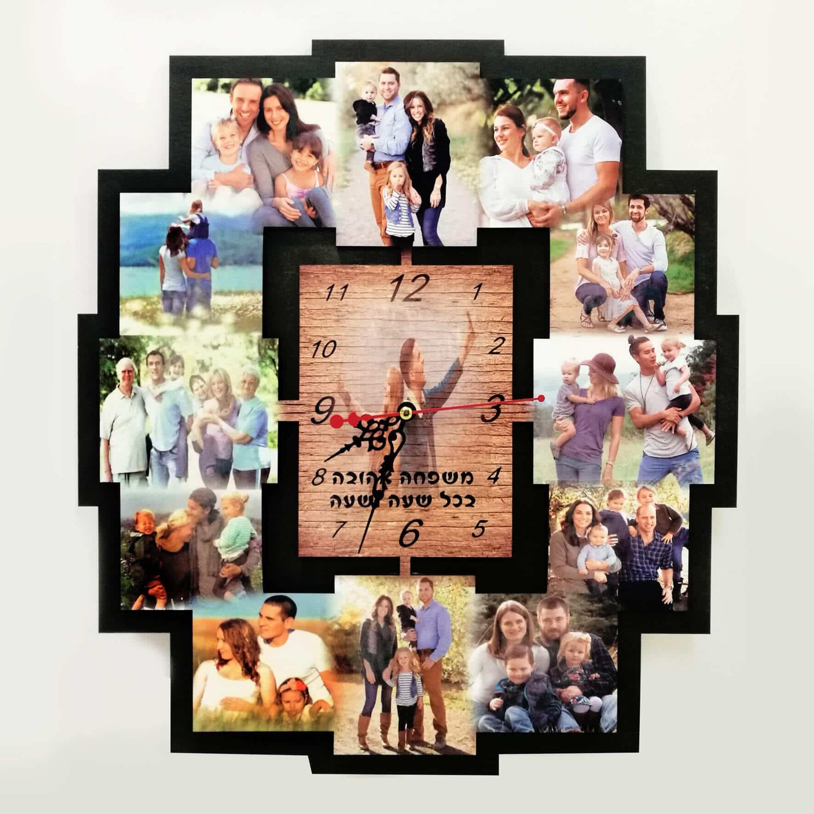 שעון קיר עם הדפסת 12 תמונות והקדשה אישית